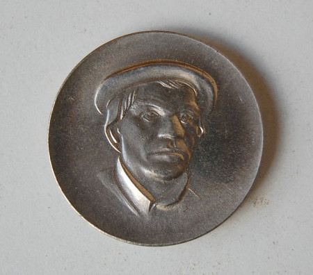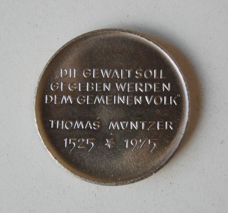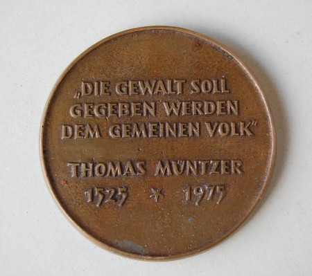 Die Stadt Mühlhausen wandte sich 1974 an den Künstler, eine Bronzemedaille von Müntzer zu fertigen. Nachdem man sich gegen die Kleinversion der Münzter-Büste (unter "Büsten") aus Kostengründen entschieden hatte, sollte diese Medaille dann als Ehrengeschenk der Stadt vergeben werden. Das von Rogge vorgelegte Bronzemodell wurde ebenfalls wieder verworfen, da auch hier die Kosten für den aufwendigen und filigranen Bronzeguss das Budget sprengten. Wie dieser Medaillenentwurf dann in die Prägeanstalt nach Hettstedt kam ist unklar- hier jedoch wurde diese dann weit verbreitete Müntzer-Medaille (mit wechselnden Rückseiten) zu Tausenden geprägt.